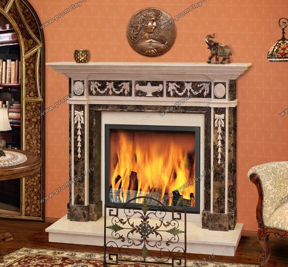 Камин Artevero Juventa. Мрамор Crema Marfil, Emperador